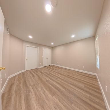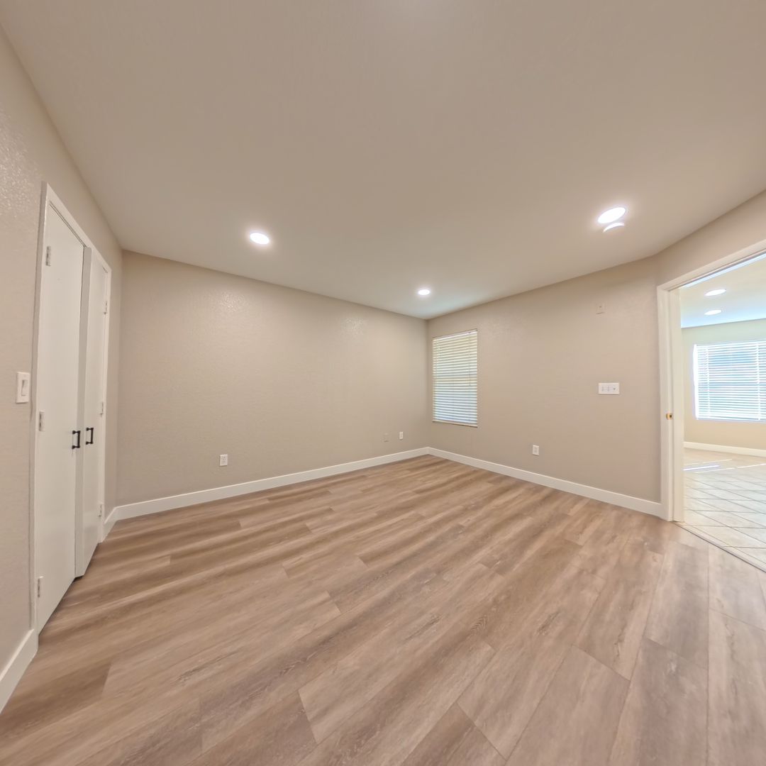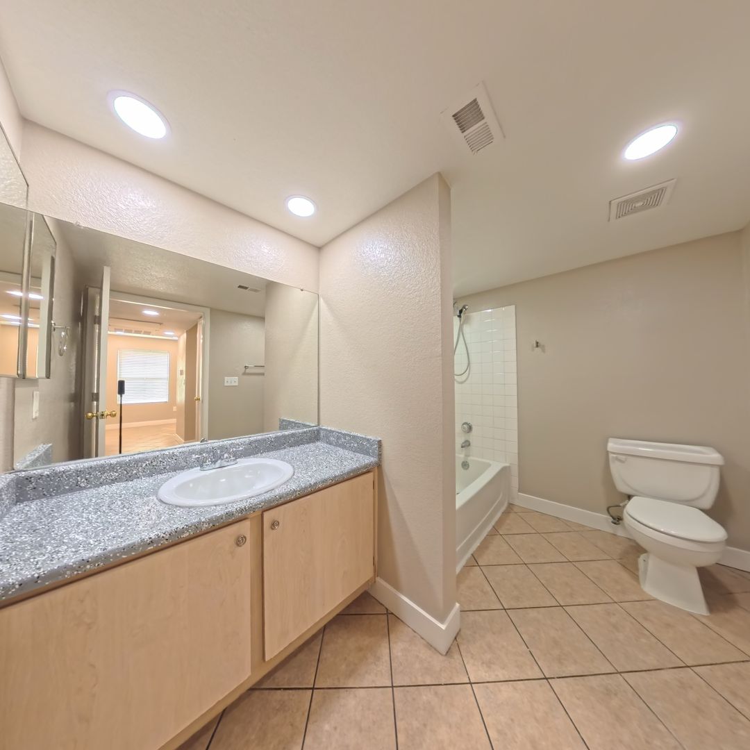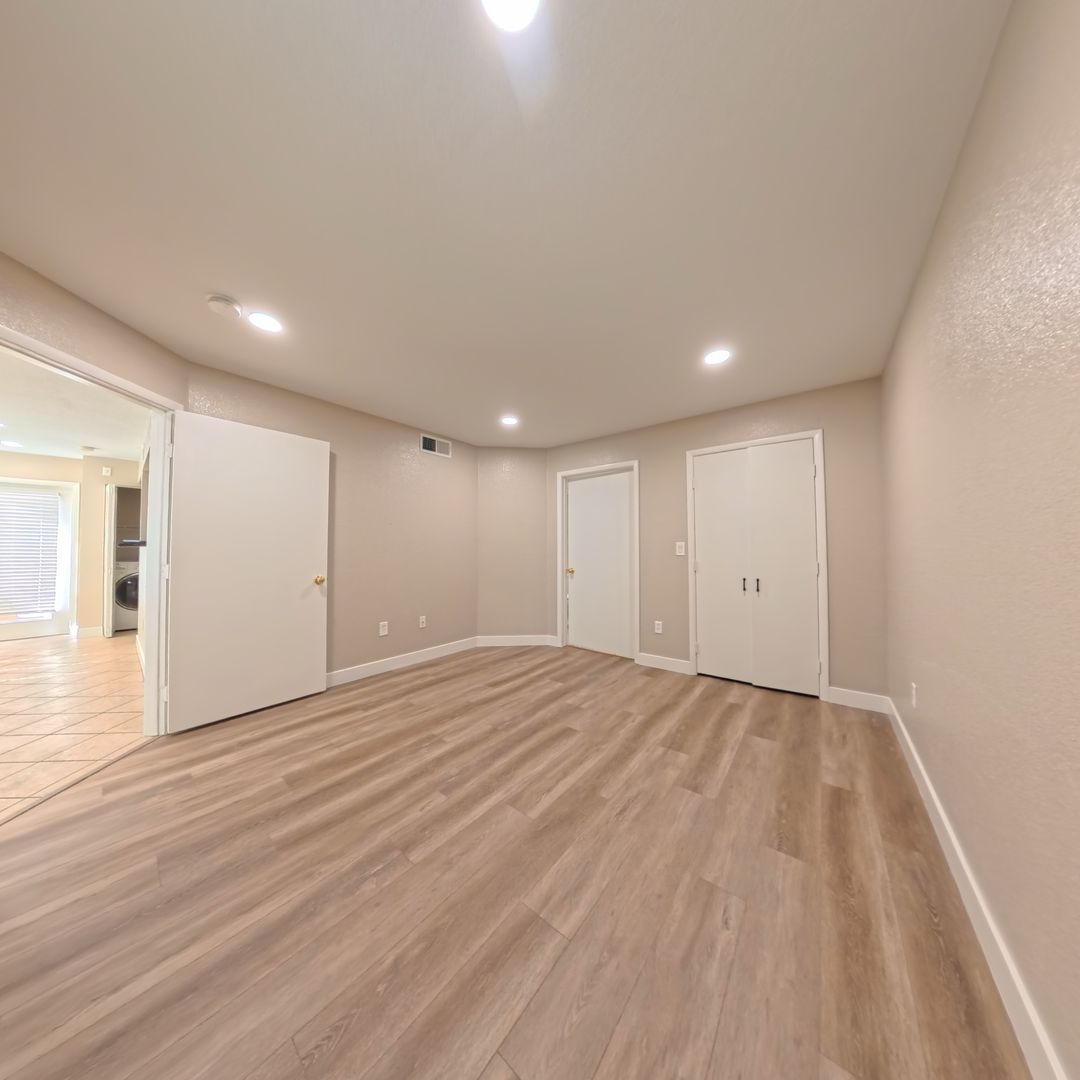 Newly painted and featuring brand-new luxury vinyl plank flooring and recessed lighting throughout, this ground-floor unit offers both comfort and style. The spacious layout includes two large, separate bedrooms—each with its own walk-in closet and full bathroom.